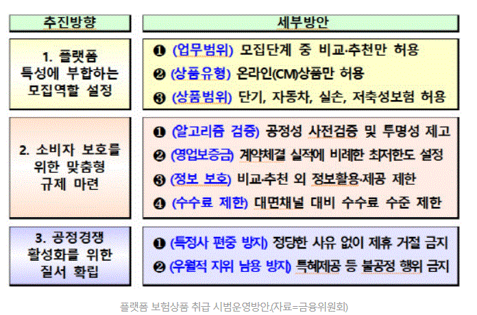 플랫폼 사업자의 업무 범위는 보험상품을 비교·추천해 보험회사에 연결해주는 '보험 권유' 단계로 제한된다.