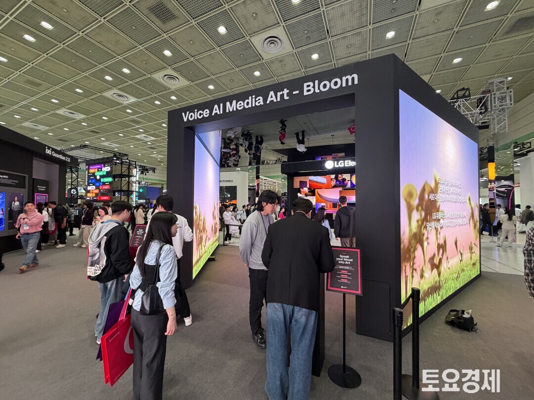 입구 쪽에서는 관람객들이 퀴즈에 참여하며 연신 웃음을 터뜨렸고 직원들은 체험 방법을 분주하게 설명했다. 부스 한편에 마련된 ‘비전 시네마’에서는 대형 스크린을 통해 미래 AI 영상을 상영했고 도슨트 투어도 함께 운영됐다.