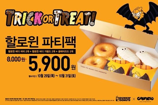 던킨도너츠 관계자는 “다가오는 할로윈을 맞이해 시즌과 어울리는 캐릭터인 가필드를 활용한 스페셜 도넛을 특별한 가격에 즐길 수 있도록 이번 행사를 기획했다”고 말했다.