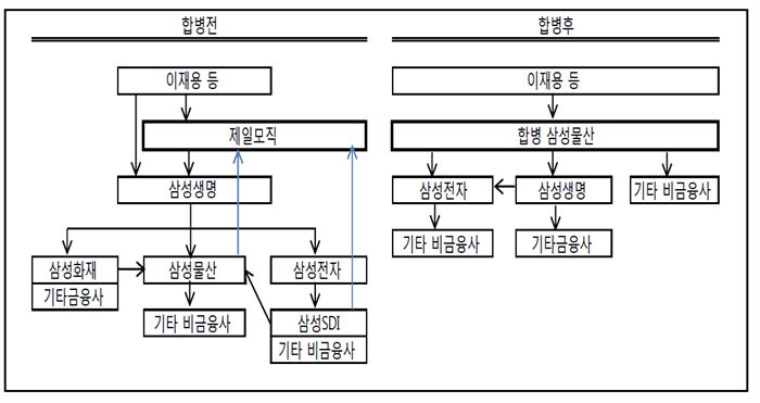 반면 삼성그룹 총수일가는 합병으로 안정적인 삼성물산 지분을 확보했다. 삼성그룹의 소유구조는 삼성물산→삼성전자→삼성SDI→삼성물산으로 이어지는 순환출자구조였다. 합병 이전 총수일가가 보유한 삼성물산 지분은 13.95%였지만 합병으로 총수일가의 지분은 40.26%로 대폭 증가했다.
