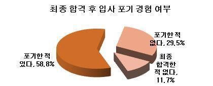 한편 응답자 10명 중 2명(15.3%)은 입사 포기를 후회한 적이 있었다.