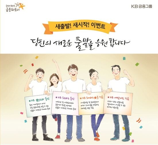 [토요경제신문=김재화 기자] KB국민은행은 입학 시즌을 맞아 2일부터 다음 달 30일까지 ‘새출발! 새시작! 이벤트’를 실시한다고 밝혔다.