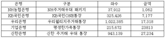 NH농협은행의 ‘NH주거래우대패키지’는 3만7912좌를 개설했고 1062억원을 모았다.