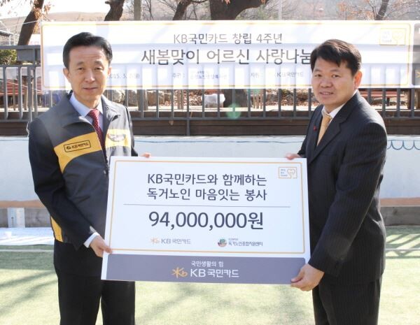 [토요경제=송현섭 기자] KB국민카드가 창립 4주년을 맞아 독거노인들을 위한 사랑 나눔활동으로 의미를 되새겼다고 2일 밝혔다.