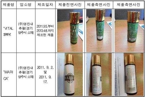 식약처의 검사결과, ‘VITAL SPARK’ 제품 1병(30ml)당 실데나필 67.34mg, 타다라필 0.88mg이 각각 검출됐고, ‘MARICA’ 제품 1병(30ml)당 타다라필 21.59mg, 치오실데나필 34.63mg이 검출됐다.