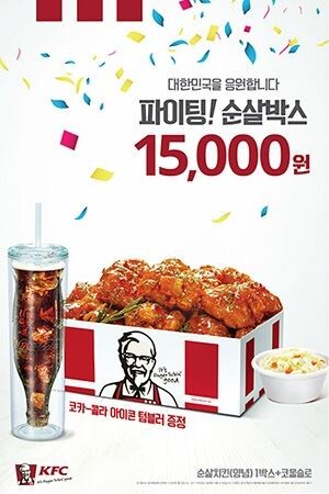 [토요경제신문=조은지 기자] 치킨 전문 브랜드 KFC는 대한민국의 올림픽 선전을 응원하는 마음을 담아 ‘파이팅! 순살박스’ 이벤트를 오는 6일부터 11일까지 진행한다고 5일 밝혔다.