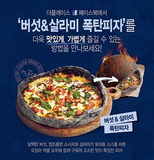 더플레이스는 버섯&살라미 폭탄피자 출시를 기념해 온라인 이벤트를 진행한다.