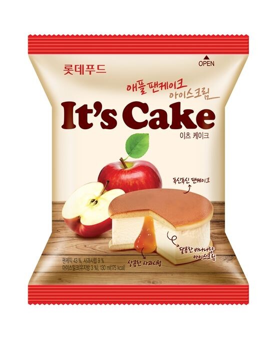 이츠 케이크는 두장에 팬케이크 사이에 아이스크림을 채워 넣은 제품이다. 아이스크림 안에는 사과시럽이 들어있다. 팬케이크에 아이스크림과 과일을 곁들여 먹는 데서 착안한 제품이다.