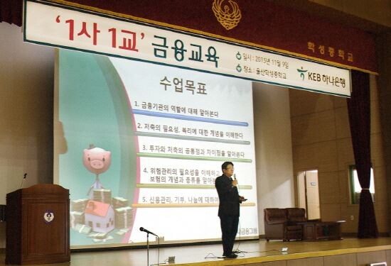 [토요경제신문=김재화 기자] KEB하나은행은 지난 9일 울산 학성중학교에서 ‘1사 1교 금융교육’을 실시했다고 10일 밝혔다.