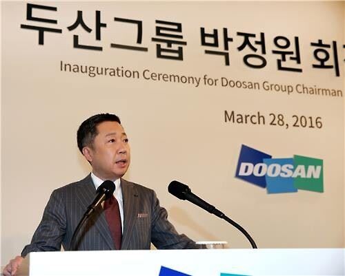 박정원 신임 회장은 28일 두산그룹 연수원에서 취임식을 갖고 그룹 회장으로 취임한다. 앞서 지난 25일 박 회장은 지주사인 두산 이사회에서 의장으로 선임되며 회장으로써 첫 일정을 시작했다.