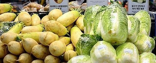 농산물은 고온과 가뭄 탓에 밭작물 작황 부진, 과수 품질 저하 등으로 무와 배추, 사과 공급 물량이 부족해 가격이 오르고 있다.