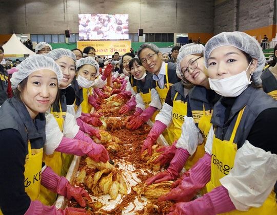 이날 봉사활동에는 국민은행 윤종규 은행장과 임직원 2600여명이 참여해 소외 이웃의 따뜻한 겨울나기를 위한 김장김치를 직접 담궈 전달했다.