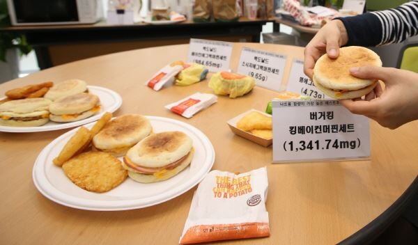 이번 조사결과에 따르면 버거킹의 ‘킹베이컨머핀 세트’의 나트륨 함량은 1341.7㎎으로 1일 나트륨 섭취권고량(2000㎎)의 67.1%에 달했다.