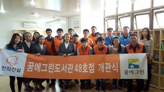 한화건설은 잠실종합사회복지관에서 꿈에그린 도서관 48호점을 개관하고 개관식을 진행했다고 20일 밝혔다. 이날 행사에는 복지관원들과 한화건설 임직원 등 관계자 30여명이 참석했다.