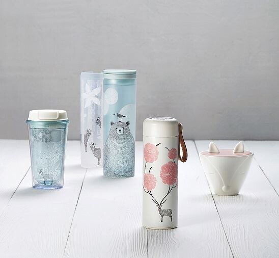 ‘한국의 숲 속’이라는 컨셉으로 디자인된 스타벅스의 이번 신제품은 아름다운 가을 숲 속에서 뛰어 놀거나 잠을 자고 있는 멸종위기 동물 반달가슴곰, 사향노루, 대륙사슴, 늑대를 서정적으로 표현했다.