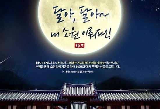 일화 아이에이치샵의 추석 이벤트는 브랜드 할인행사, 감사카드 및 발송일 지정 사전예약 서비스, 적립금 페이백, 소원 댓글 달기 경품 응모 행사 등 4가지로 진행된다.