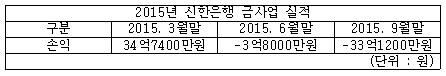 신한은행은 지난 2013년에 683억8000만원의 순익을 기록했지만 지난해에는 181억700만원의 손실을 기록했다.