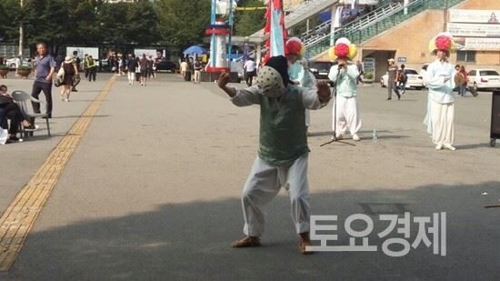 ▲ 동래야류 다섯과정 중 두번째인 문둥이과장이다. 문둥이과장은 대사없이 춤으로만 연회되며 양반의 자손으로서 조상들의 누적된 죄과의 인연으로 불치의 문둥병이 걸려 출세하지 못하는 골수에 맺힌 원한과 비분의 통탄을 춤으로써 표현한다. <사진=토요경제>