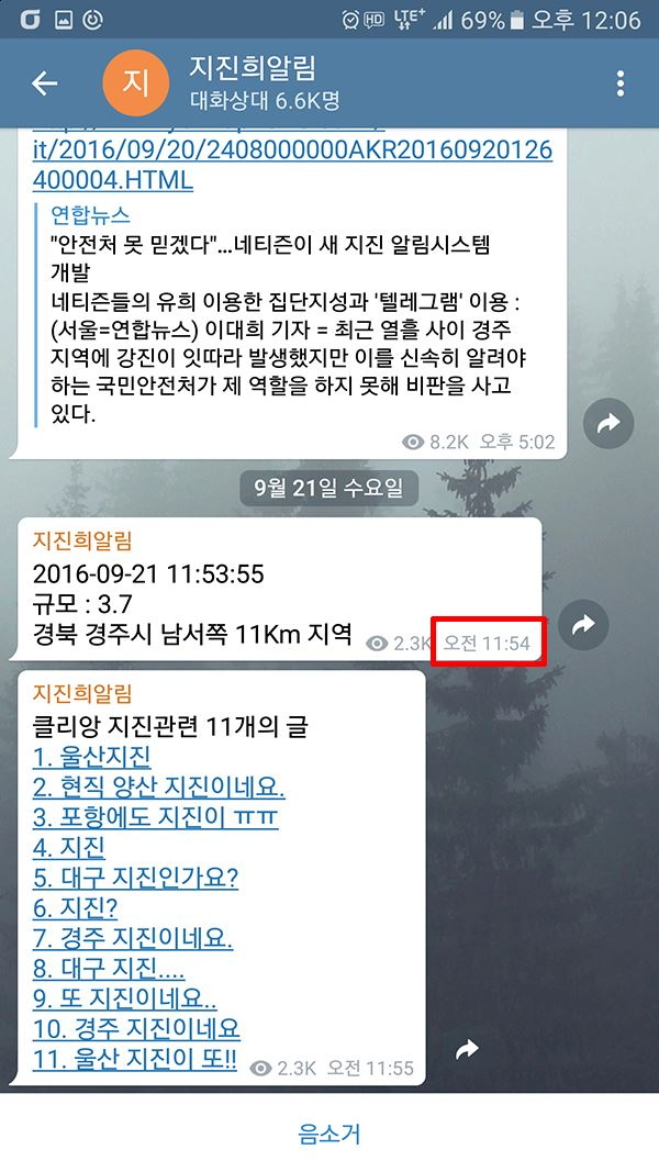 커뮤니티 반응으로 지진 알림