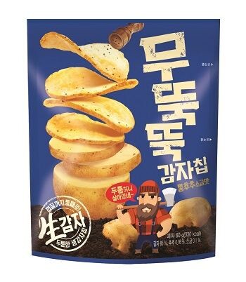 ‘무뚝뚝 감자칩’은 통감자를 약 3㎜ 두께로 껍질째 두툼하게 썰어 튀겨내 새로운 식감과 맛을 구현한 오리온의 야심작이다.