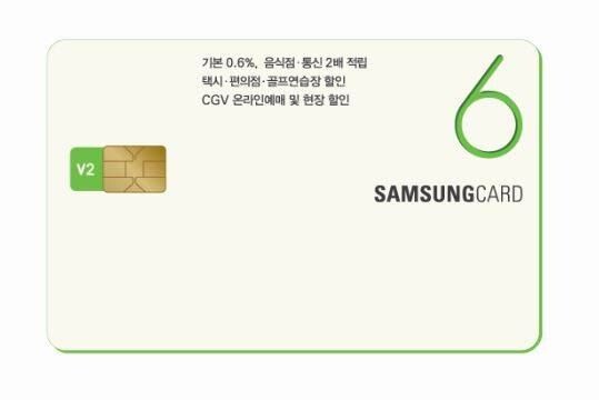 카드 사용에 따른 포인트 적립, 할인 혜택도 높다. 삼성카드 6 V2는 모든 가맹점에서 전월 이용금액에 관계없이 기본 0.6%가 적립된다.