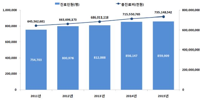 최근 5년간(2011~2015)의 건강보험 및 의료급여 심사 결정 자료에서 나타난 ‘허혈성 심장질환’의 진료 추이를 살펴보면, 진료 인원은 약 10만 5000명(13.9%)이 증가했고, 총진료비는 약 895억 9000만 원(13.9%) 증가율을 보였다.