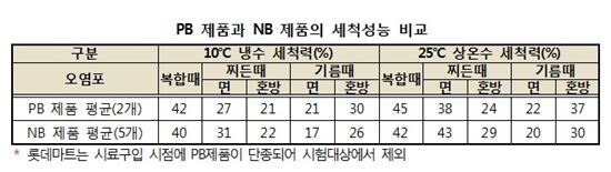 PB 제품의 NB 제품의 평균 세척력을 비교한 결과 PB 제품이 세척성능에서 NB제품에 뒤쳐지지 않는 것으로 드러났다. 오히려 복합때와 기름때에 대한 세척력은 PB 제품이 NB 제품보다 우수했다.