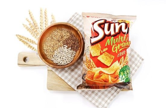 오리온이 이달 초 출시한 ‘선 멀티그레인’은 자극적인 맛은 줄이고 통곡물 본연의 맛을 극대화한 스낵이다.