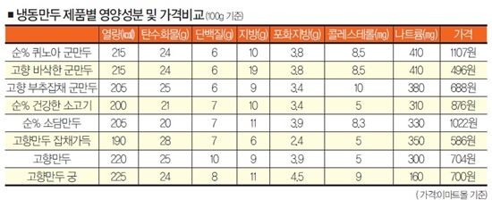 나트륨 함량은 ‘고향만두 궁’(160㎎)보다 2.5배 이상 많았다. 성인 1일 나트륨 권장량(2000㎎)의 20%가 넘는 수준이다.