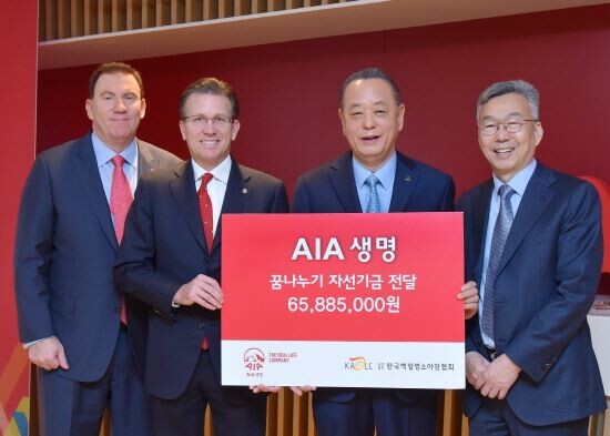 다니엘 코스텔로 AIA생명 대표는 “임직원들이 모은 작은 정성이 백혈병·소아암과 싸우고 있는 아이들에게 희망이 되길 바란다”며 “AIA생명은 앞으로도 질병으로 고통 받는 소외이웃을 위해 지원을 아끼지 않을 것”이라고 했다.