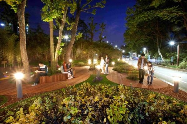 ▲ 6일 한화그룹이 서울시와 함께 ‘한화 불꽃정원’을 보라매공원에 조성했다. ‘한화 불꽃정원’은 보라매공원의 3개 정문 가운데 가장 어두웠던 남문 입구에 설치돼 시민들에게 새로운 휴식 공간을 제공한다. <사진=한화>