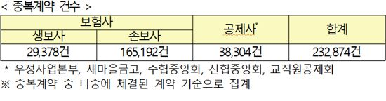 감사원도 지난 8월 금융위 감사 결과에 "실손의료보험계약 외의 다른 실손담보 보험계약에 대해서는 보험계약 모집 때 중복계약 체결 여부 확인과 비례보상 원칙 안내 등의 제도를 마련하지 않고 있으며 중복가입 현황 파악도 제대로 하지 못하고 있다"고 지적했다.