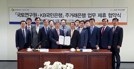 [토요경제=이명진 기자] KB국민은행은 11일 국토연구원과 양 기관 공동 발전을 위한 주거래 업무제휴 협약을 체결했다. 이에 KB국민은행은 올해 12월 세종시로 이전하는 국토연구원의 주거래 은행 업무를 수행하게 된다고 12일 밝혔다.