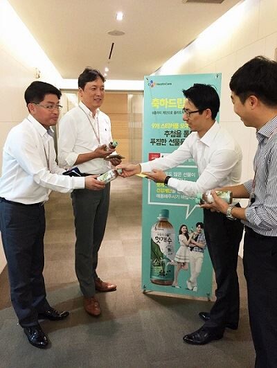 [토요경제=조은지 기자] CJ헬스케어의 웰빙헛개수가 CJ제일제당 사옥 내 임직원들을 대상으로 ‘웰빙헛개수와 함께 계단 오르기 캠페인’을 펼친다고 12일 밝혔다.