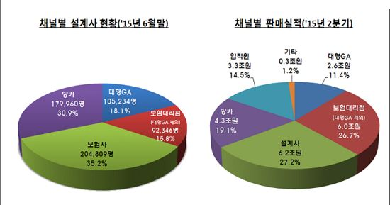 보험연구원에 따르면 지난해 말 국내 생명·손해보험사 소속 설계사는 18만3296명으로 2012년 21만1474명보다 13.3% 줄었으며, 보험판매 전체에서 설계사 채널이 차지하는 비중이 절반 가까이 줄어든 것으로 나타났다.