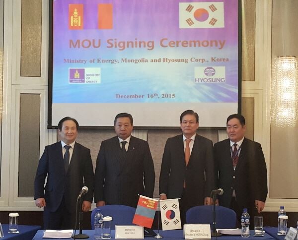효성은 몽골 에너지부와 1420억원 규모의 220KV급 변전소 2기와 315Km 길이의 송전망 및 975기의 송전탑을 건설하는 내용의 양해각서(MOU)를 체결했다고 17일 밝혔다.
