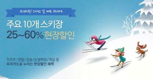 우리카드 고객은 BC카드와 공동으로 진행하는 이벤트를 이용하면 스키장에서 할인 혜택을 받을 수 있다.