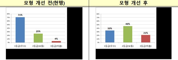 이를 반영해 평가 방식을 개선할 경우 1등급 생보사는 지난해 실적 기준이 71%에서 33%로 대폭 줄어든다.
