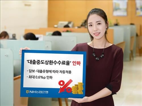 [토요경제신문=여용준 기자] NH농협은행이 오는 21일부터 중도상환수수료율을 최대 0.6%포인트 인하한다.