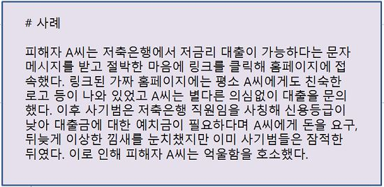 대출빙자형 사기 수법은 신용도가 낮아도 저금리 대출이 가능하다는 점을 들어 소비자에게 보증서 발급비와 대출상환 자금 등을 편취하는 방식의 사기행각이다.