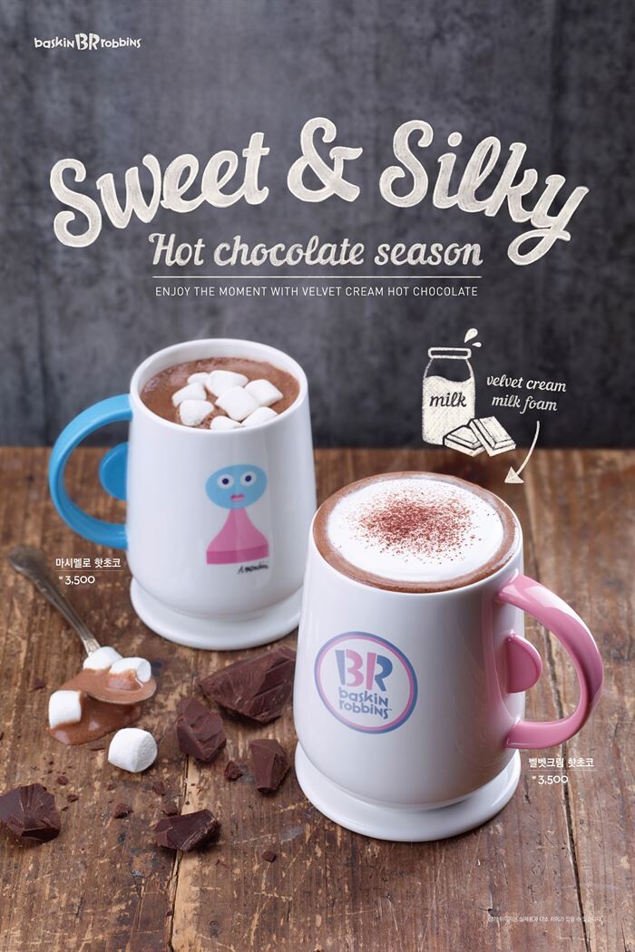 한편 배스킨라빈스는 ‘벨벳크림 핫초코’와 함께 진한 핫초코 위에 말랑하고 쫀득한 마시멜로를 얹은 ‘마시멜로 핫초코’도 선보인다.