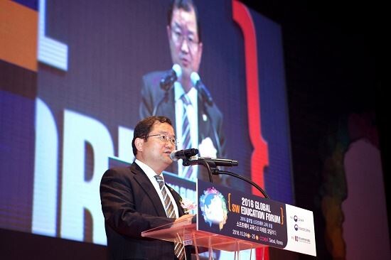 ▲ 미래창조과학부, 교육부, 한국과학창의재단이 24일 오전 서울 강남구 코엑스 오디토리움에서'소프트웨어 교육으로 미래를 코딩하다' 를 주제로 '2016 글로벌 소프트웨어(SW)교육 포럼' 을 개최했다. 최재유 미래창조과학부 제2차관이 개회사를 하고 있다.