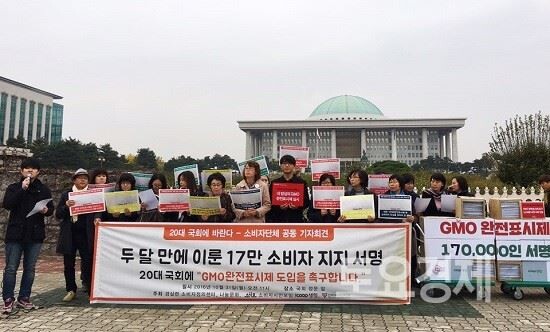 기자회견에 참여한 단체들은 소비자들의 기본적인 알권리와 선택할 권리를 보장하고 20대 국회에서 GMO완전표시제 도입을 논의해 줄 것을 촉구했다.