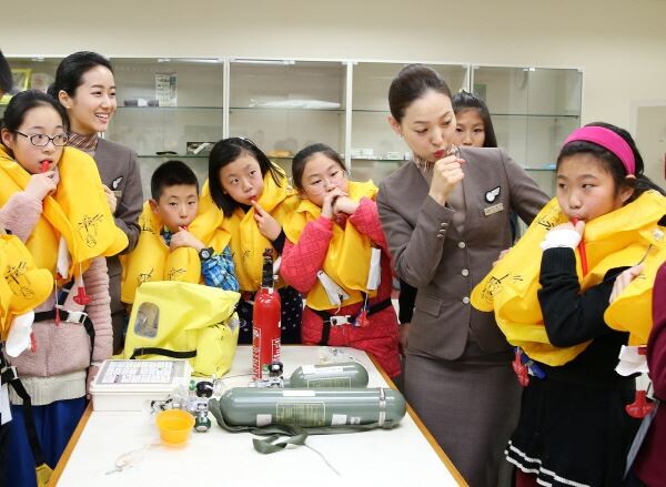 [토요경제=송현섭 기자] 아시아나항공이 6일 중국 학생들을 대상으로 항공안전훈련과 기내 서비스 체험행사를 개최했다.