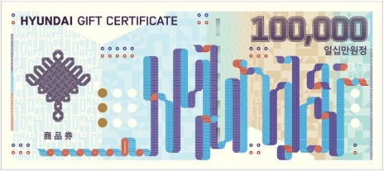 상품권 중앙에는 영문 ‘HYUNDAI’를 사물놀이패의 상모 리본의 움직임을 차용해 레터링 한 것으로 현대백화점의 브랜드 정체성을 강조한 것이 핵심이다.