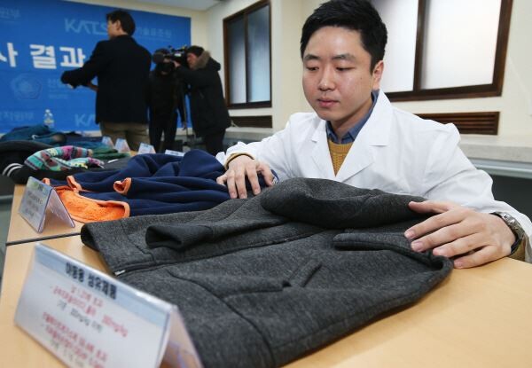 성인의류는 3개 제품이 피부와 접촉이 잦은 원단 및 겉감에서 수소이온농도가 기준치를 초과해 알레르기성 피부염을 유발할 수 있다.