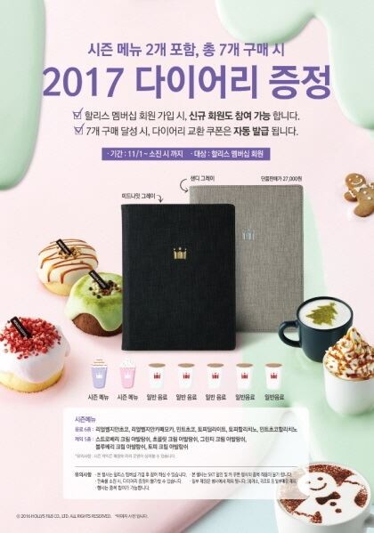 한정판 개념의 플래너는 겨울시즌 음료를 비롯해 일종수량의 커피를 마시면 사은품 기념으로 소비자들에게 제공하고 있다.
