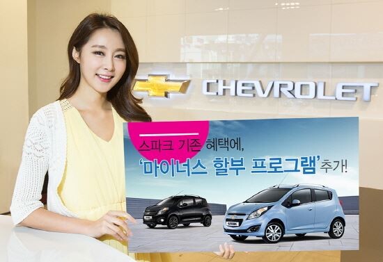 쉐보레의 국내 브랜드 도입 4주년을 맞아 파격적인 할인 혜택을 진행하고 있는 한국지엠은 크루즈, 말리부, 올란도, 캡티바 등 4개 차종에 적용하던 ‘Big 4 업그레이드 프로그램’ 외에 스파크를 구입하는 고객을 대상으로 ‘마이너스 할부 프로그램’을 추가한다고 밝혔다.