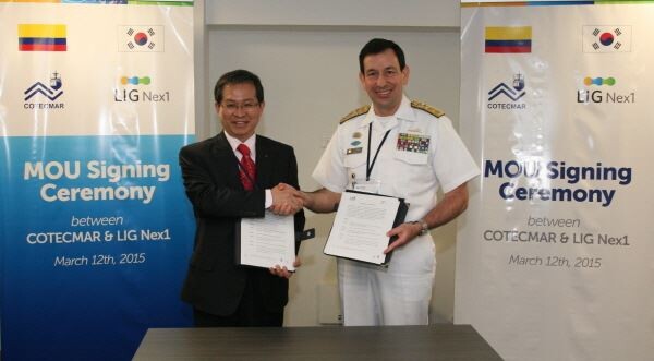 이와 관련 LIG넥스원은 현지시간 12일 콜롬비아 카르타헤나 코텍마르(COTECMAR) 본사에서 현지 해군사령관 에르난도 윌스 발레스(Hernando Wills Valez), 호르헤 까레뇨 모레노(Jorge E. Carreno Moreno) 코텍마르 사장 등이 참석한 가운데 코텍마르와 콜롬비아 연안경비정사업을 위한 업무협약(MOU)을 체결했다.