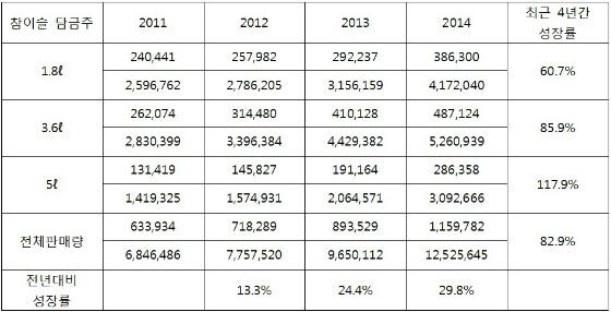 또한, 지난해에는 116만 상자를 판매해 2013년 대비 약 30%의 증가를 보이며 가파른 성장세를 이어갔다.
